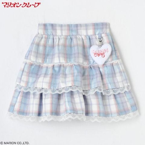 ロゴ入りの可愛いファーチャームが付いたティアードミニスカート。
