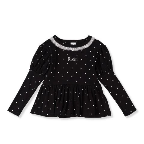 ドット柄と胸元のサテンリボンが目を惹くプルオーバーです!