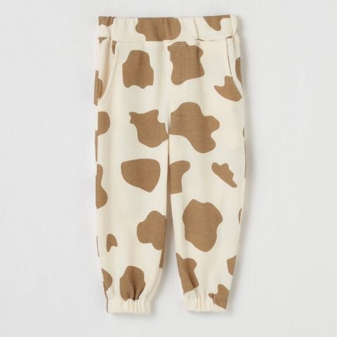 カウ柄が目を惹く綿混の裏毛素材を使用したロングパンツです。