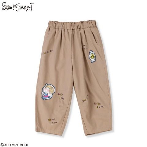 人気イラストレーター水森亜土のキュートなキャラクターが散りばめられたパンツ。