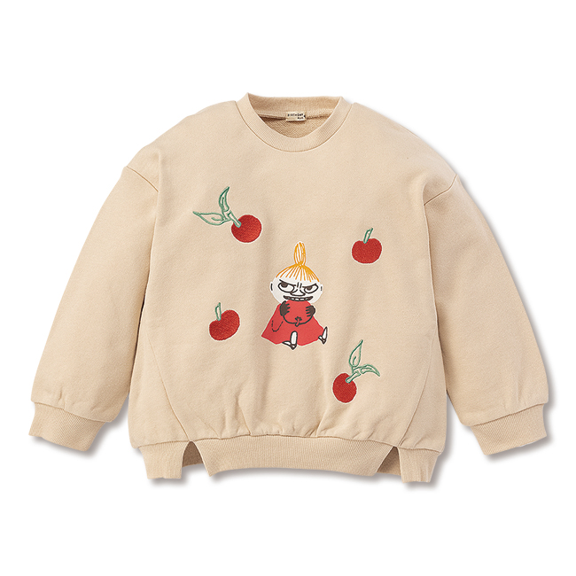 リトルミイがちょこんと座ったデザインが可愛い、裏毛素材のトレーナーになります。