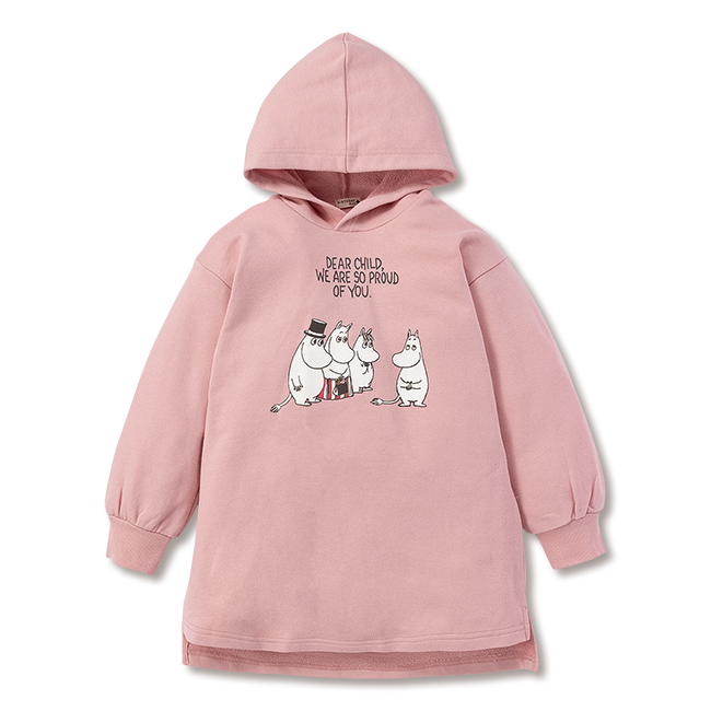 ムーミンたちがデザインされた、裏毛素材のワンピースです。