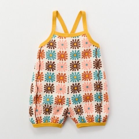 キュートなテレコ素材のサロペット。同じ色・柄のトップスもあります