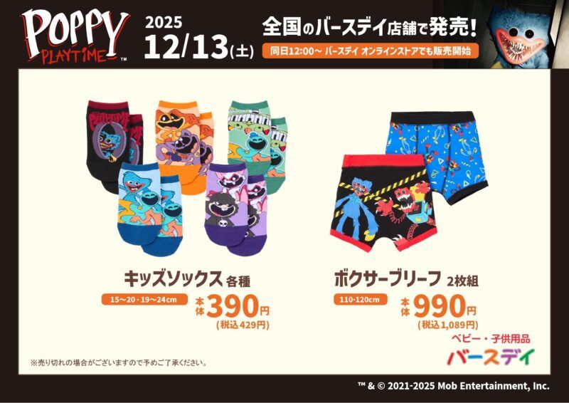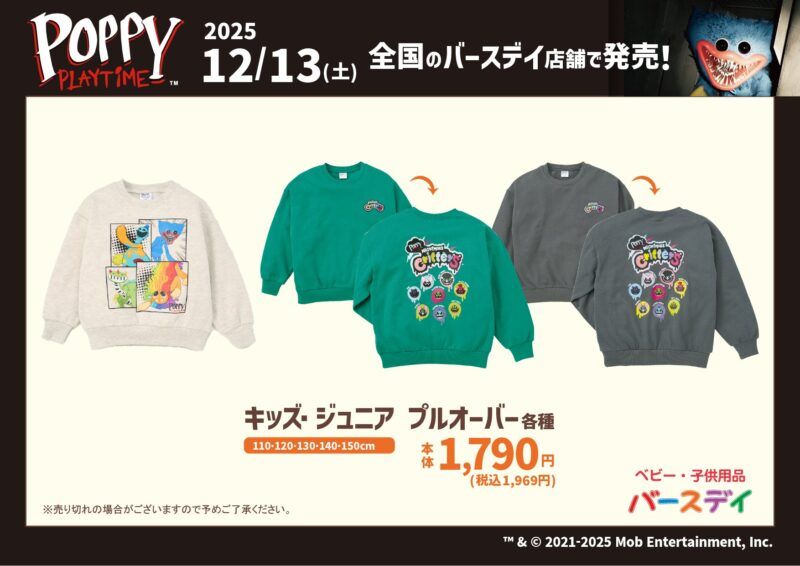 - バースデイ『ポピープレイタイム』コラボ!トレーナー、ソックス、パンツが2025年12月13日(土)より新発売!