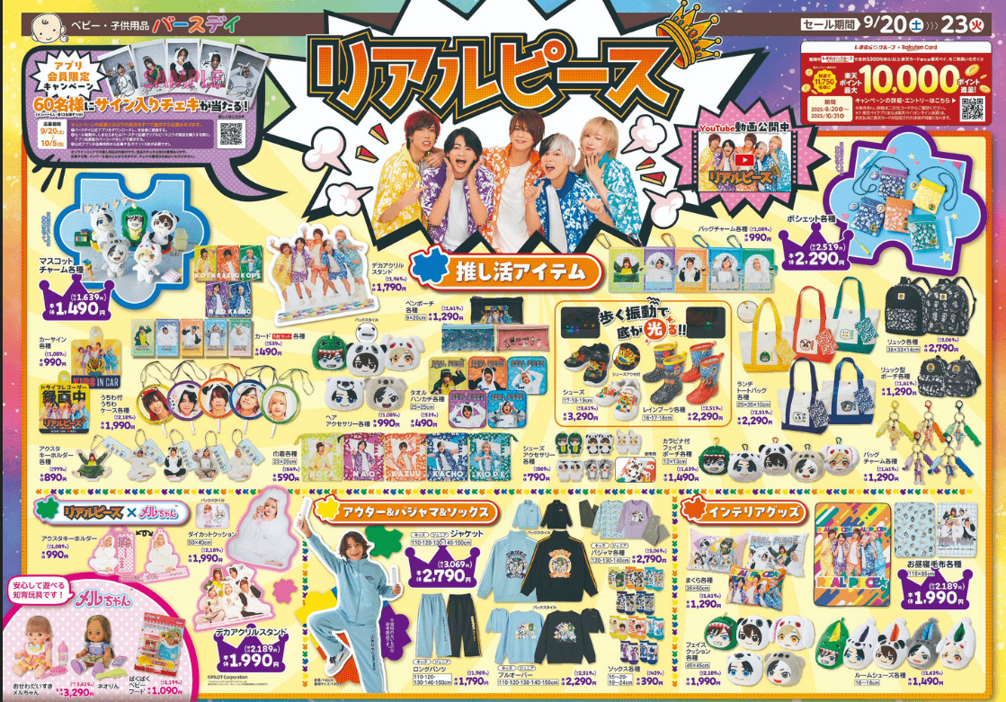 しまむら系列バースデイでは、『リアルピース』大型コラボを2025年9月20日(土)より新発売します。限定商品でファン必見です。