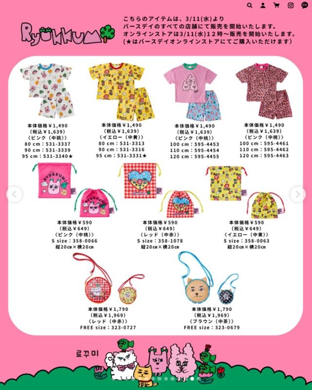 バースデイ『RYOKKUMi(りょくみ)』コラボの最新の発売日、種類、品番、再販売などをまとめます!