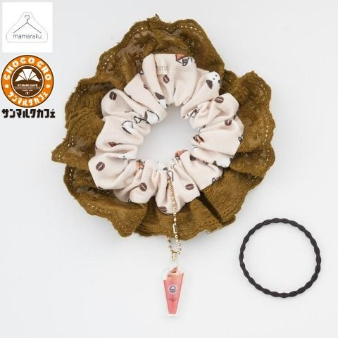 サンマルクカフェデザインのシュシュとゴムのセットです。