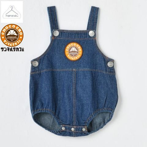 デニム素材にサンマルクカフェのロゴがアクセントになったロンパースです。
