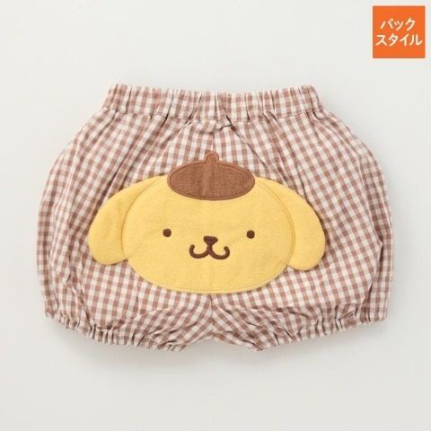 トップスにはポムポムプリンのイラストとロゴを編み込みで表現し、
