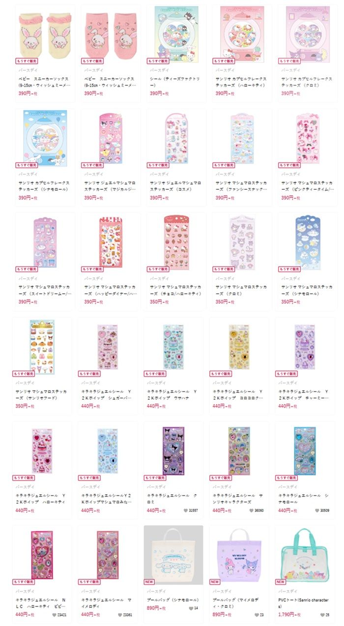 バースデイ『サンリオ』コラボの最新の発売日、種類、品番、再販売などをまとめます!