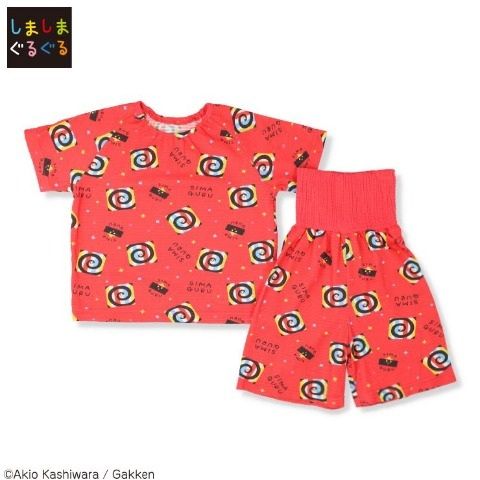 赤ちゃんの目が釘付けになる不思議な絵本「しましまぐるぐる」が可愛いパジャマになりました。絵本から飛び出してきたような鮮やかな赤と、おなじみのぐるぐる模様に、お子様もきっと大喜び。お着替えの時間も、まるで読み聞かせをしているような楽しいひとときに変わります。腹巻付きなので、お腹もしっかりガード。伸縮性のある針抜き天竺素材で通気性も抜群の実用性を兼ね備えた、夏にぴったりの一着です。