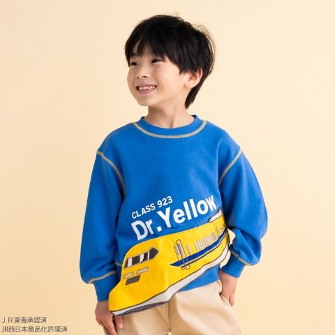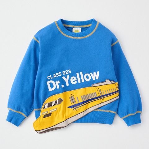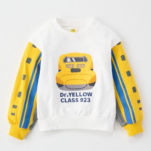 ドクターイエローをモチーフにした立体的なサガラ刺しゅう使いがポイントの綿100%の裏毛素材を使用した長袖プルオーバーです。