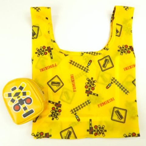 踏切をモチーフにしたユニークなデザインの巾着です。