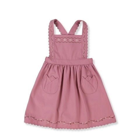 ハニカム柄の刺しゅうが施されたエプロンワンピースです。