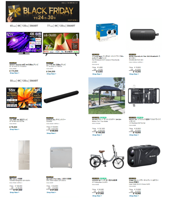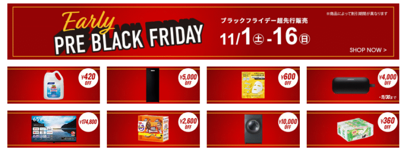 11月に入ると『ブラックフライデー』のセール情報が各店舗から出されています。2023年も大特価や特別セットで販売が開始されることが予想されます!基本的には11月の第4金曜日~の3日間程度!狙い目のオススメショップをまとめます。
