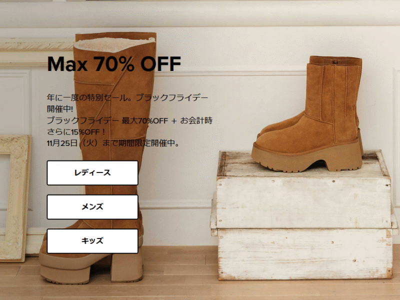 | UGG(アグ) | 11月18日ころよりオンラインストアで開催 | |
