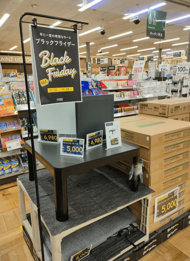 ホムセンというかカインズなんだけど入ってすぐにブラックフライデーのポスター貼ってあるエリアがあって,そこにあったこのヒーターがかわいすぎて入り口から足止めされた。そしてまんまと買った。