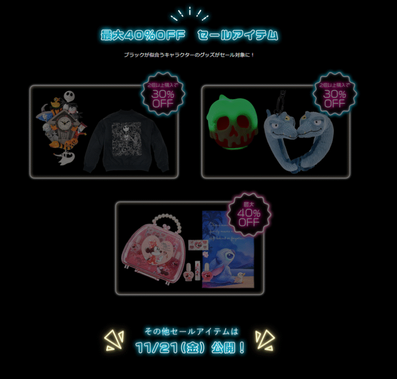 ディズニーフラッグシップ東京とディズニーストア店舗、ディズニー公式オンラインストアにて11月22日より、『ブラックフライデーセール』が開催されます。最新商品が最大40%OFFなどお得な内容になっています!