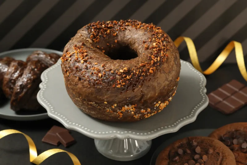 - ブラックココアを練り込んだデニッシュ生地にチョコチップを巻き込み、リング状に仕上げました。