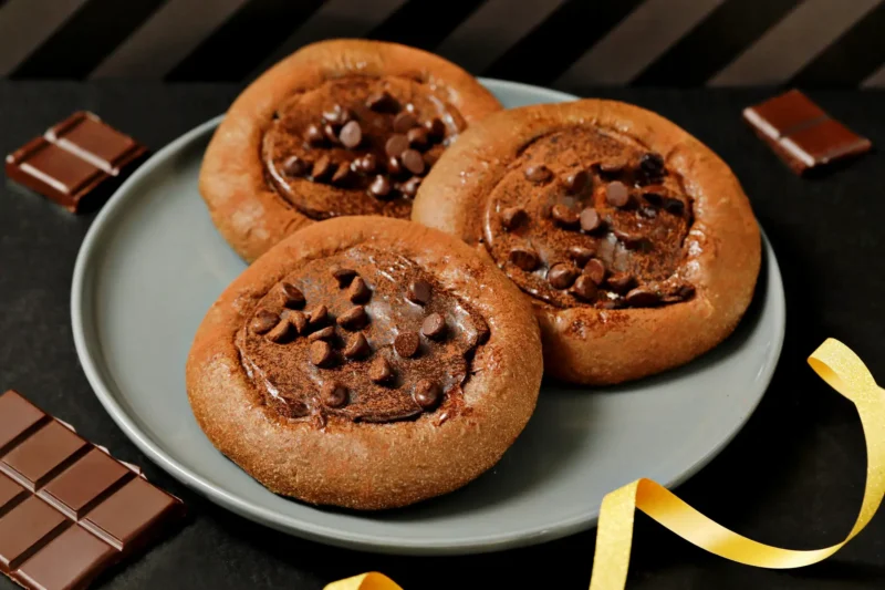こだわり:ふんわり柔らかなブラックココア生地にナッツ風味のチョコクリームを絞り、チョコチップで仕上げた新商品。ビターな風味とチョコクリームの甘み、チョコチップの食感が絶妙にマッチ。チョコ好きの方にぜひ味わってほしい、ブラックフライデー限定のスイーツパンです。