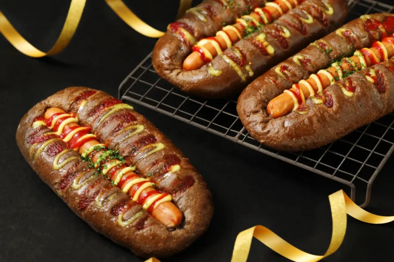 こだわり:ブラックココアを練り込んだふんわり柔らかな生地にウインナーをのせた、新作パンのブラックフライデー限定商品です。ココア風味の生地とウインナーの旨みに、ケチャップとマヨネーズが合わさり、一度食べればクセになる甘じょっぱい味わい。見た目も驚きのまっくろなウインナーパンです。