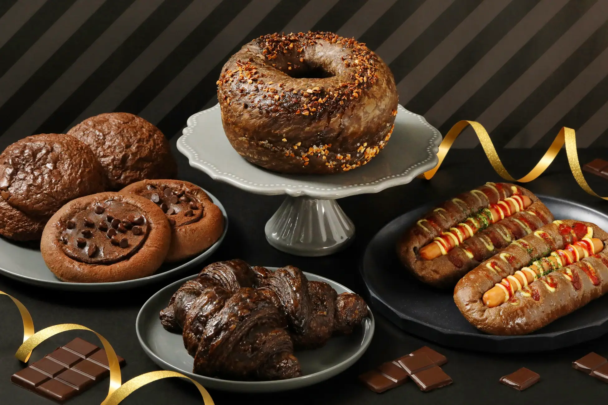 11月17日(金)よりブラックフライデーに向けた新商品『ブラックフライデーチョコリング』、『ブラッククロワッサン』、『ブラックメロンパン』、『カスタードショコラ』、『もっちりベーグル チョコ』の全5種を新発売!
