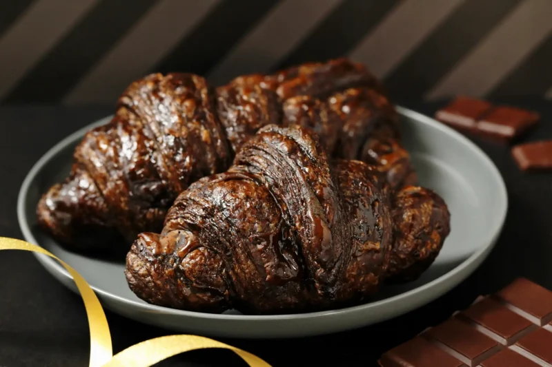 こだわり:ブラックフライデー限定のチョコ香るスイートなクロワッサンです。生地にも中にもチョコを入れることで、サクッと食感とともに昨年よりしっとりとした食感が際立つクロワッサンに仕上げました。