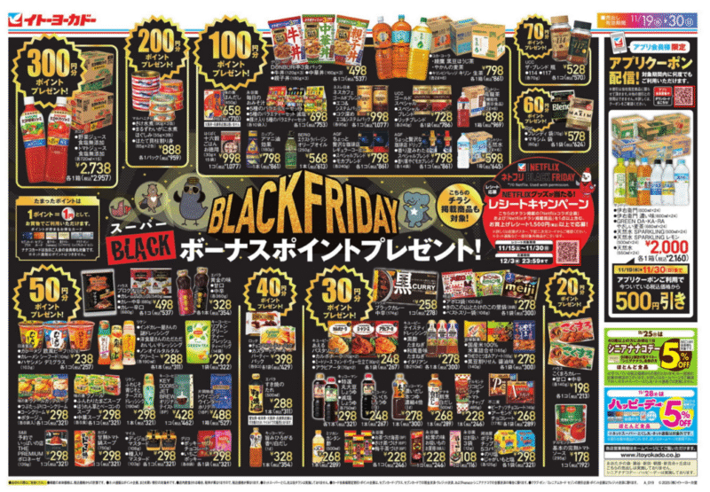 イトーヨーカドーブラックフライデーは、特別提供品やNetflixコラボアイテムなど、お得な企画が満載。