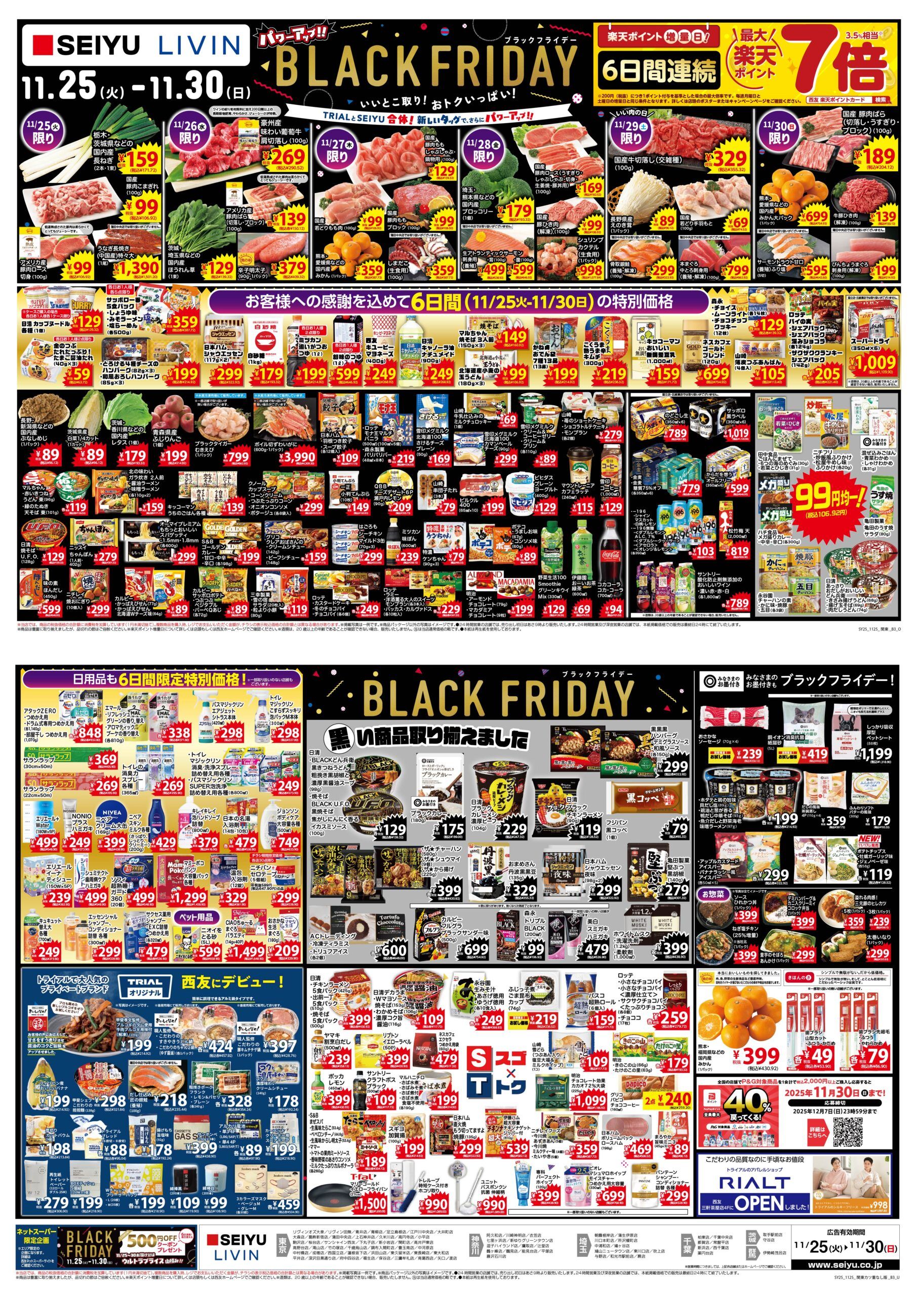 11月25日(火)~11月30日(日)の期間、西友全店で「ブラックフライデー」のセールを開催します!