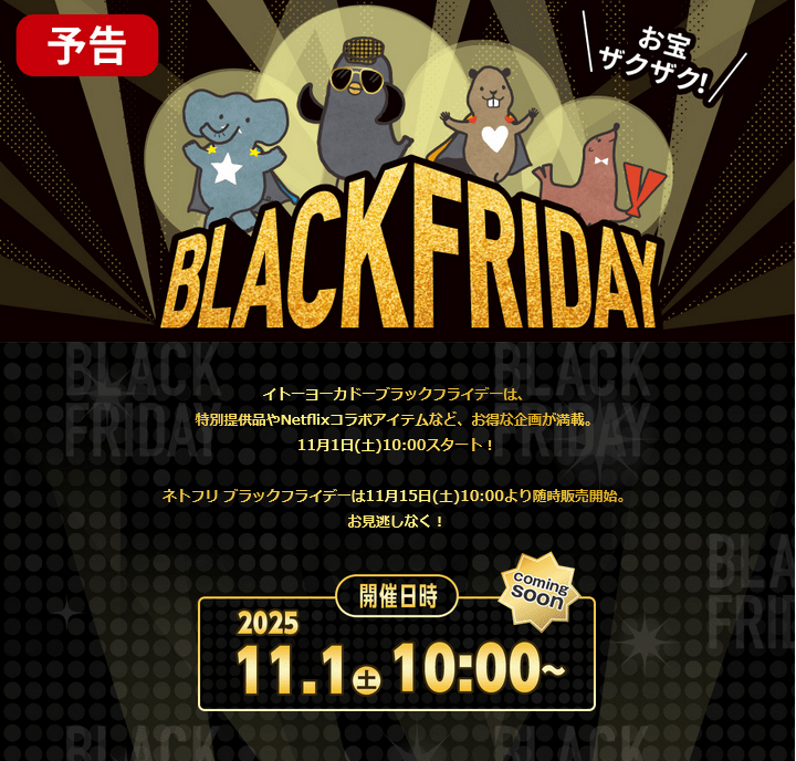 イトーヨーカドーブラックフライデーは、特別提供品やNetflixコラボアイテムなど、お得な企画が満載。