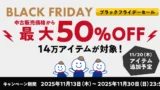 ブラックフライデーでポイント10倍や、50%オフになるセールなどを実施しています。