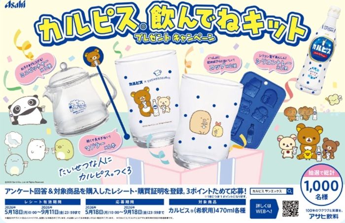 アサヒ飲料カルピスでは『サンエックスユニバース』コラボを2026年夏に実施します。サンエックスユニバースの人気キャラクターたちがさまざまな企画に参加!また、店頭キャンペーンなどにも期待です!