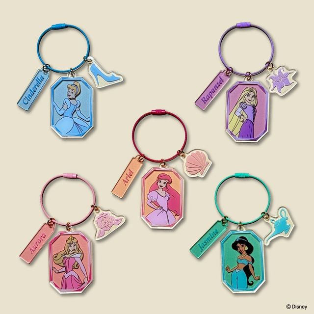 プリンセスをイメージしたモチーフ付きのアクリルキーホルダーなど、毎日をプリンセスと共に過ごせる全39品番をラインナップ。