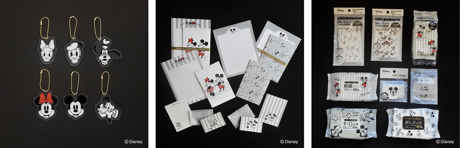 また同時に、シンプルで使いやすいモノトーンの第1弾「ミッキー&フレンズ」商品も新しく加わり、