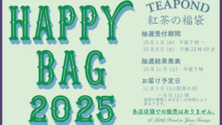 食品福袋 TEAPOND(ティーポンド)2025年 紅茶の日 紅茶の福袋 通販の実で店頭は無し!ハッピーバッグ販売方法、中身ネタバレ、口コミ! TEAPOND(ティーポンド)では毎年11月の紅茶の日の近辺で『福袋』を販売します。オンラインストアでは抽選販売、店頭で・・・続きを読む 2025.10.01 食品福袋