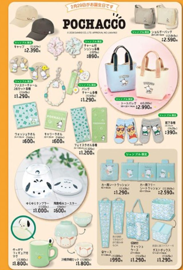 『ポチャッコ』の誕生日が2月29日(うるう年生まれ)のため、誕生日特別企画での単体グッズの発売と思われます!
