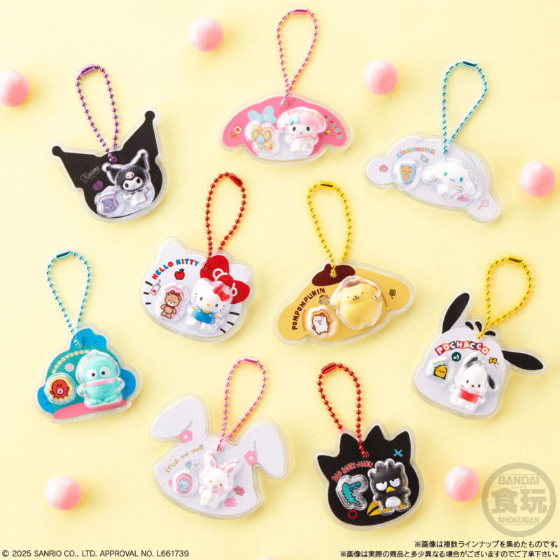 サンリオキャラクターズ パッケージチャーム&チョコボーロ ラインナップは全10種類/うちシークレット1種