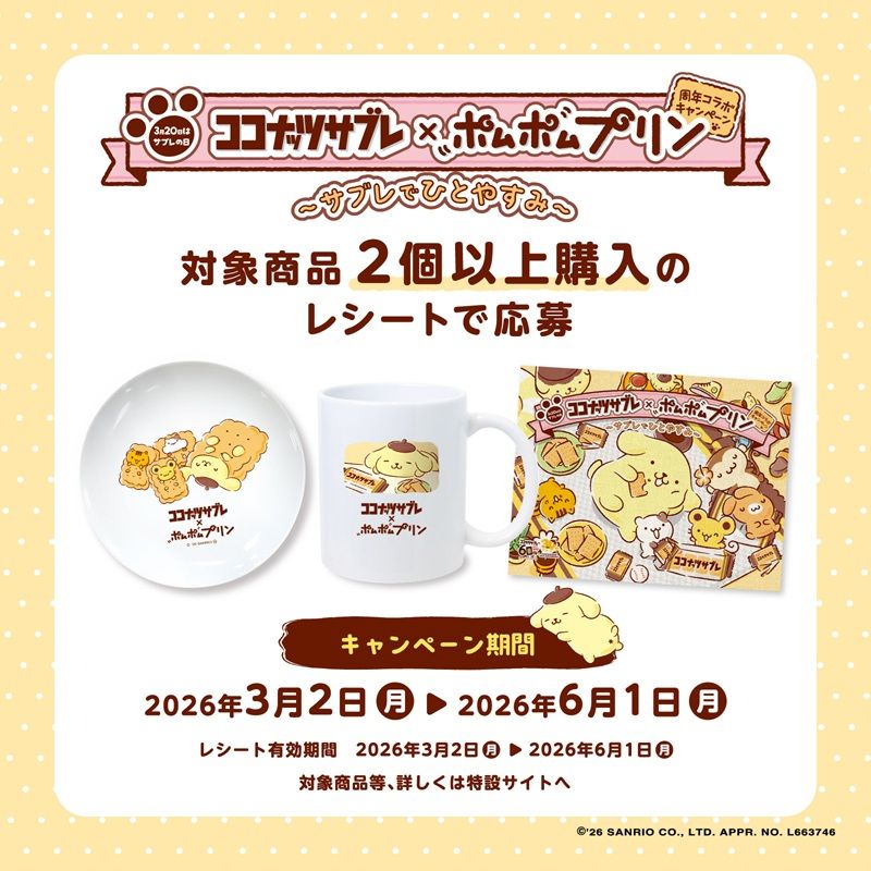 ココナッツサブレ×ポムポムプリン周年コラボキャンペーン~サブレでひとやすみ~