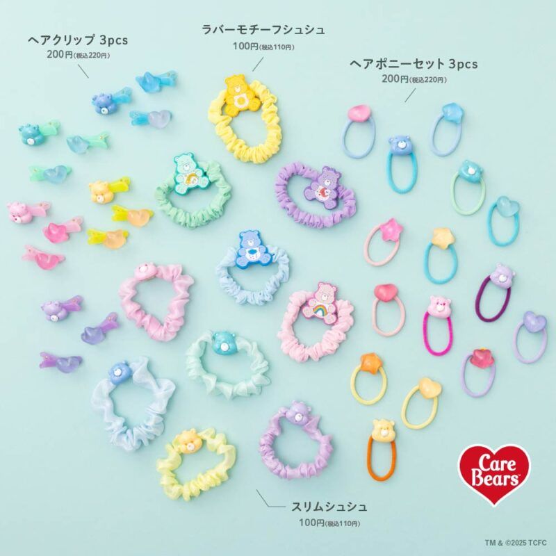 ダイソー『ケアベア』コラボ!ぬいぐるみチャーム、パスケース、ヘアゴム、ヘアクリップ、シュシュ、リストバンドなどの雑貨が発売!