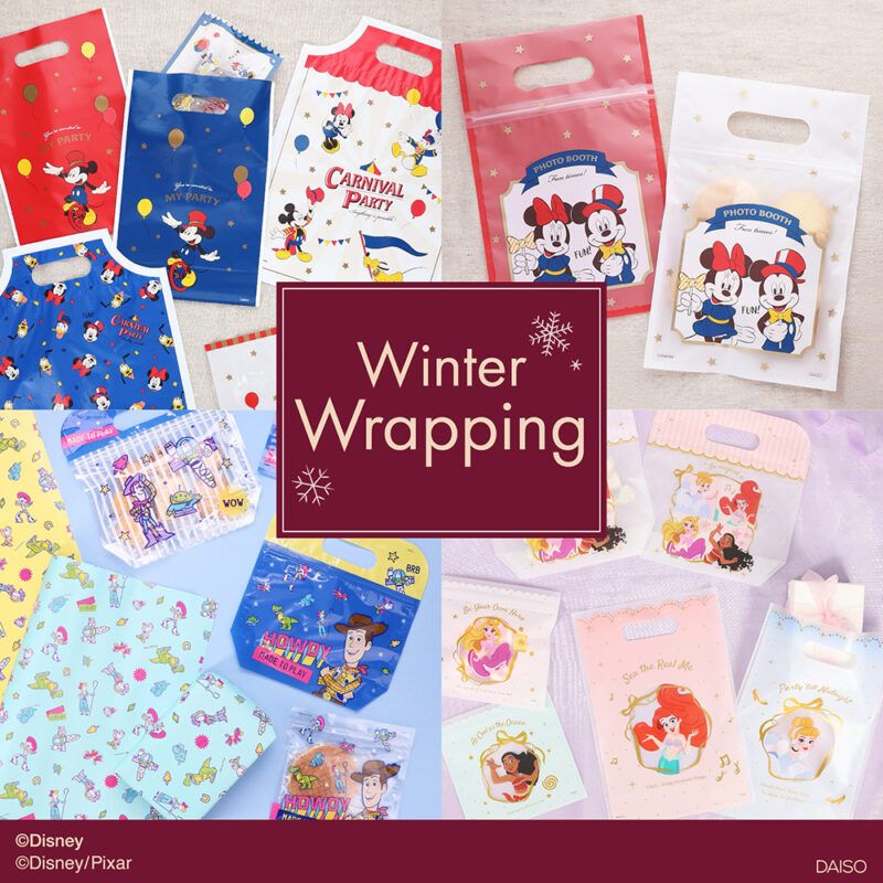 大きめサイズの巾着バッグや包装紙、定番のハンドルバッグやジップバッグなどをラインナップ!ホリデーシーズンの贈り物や、プレゼントのラッピングにおすすめです。