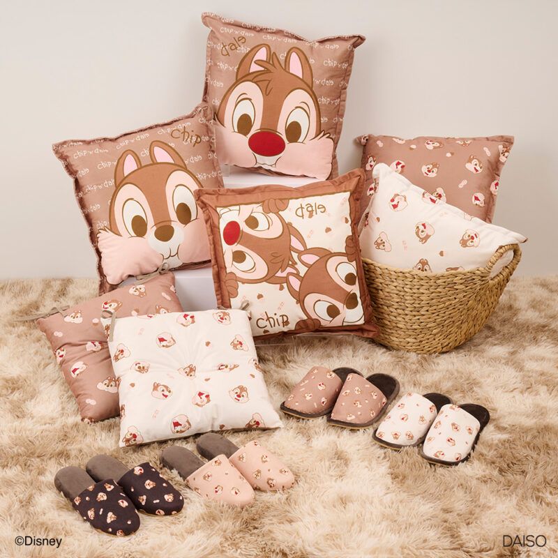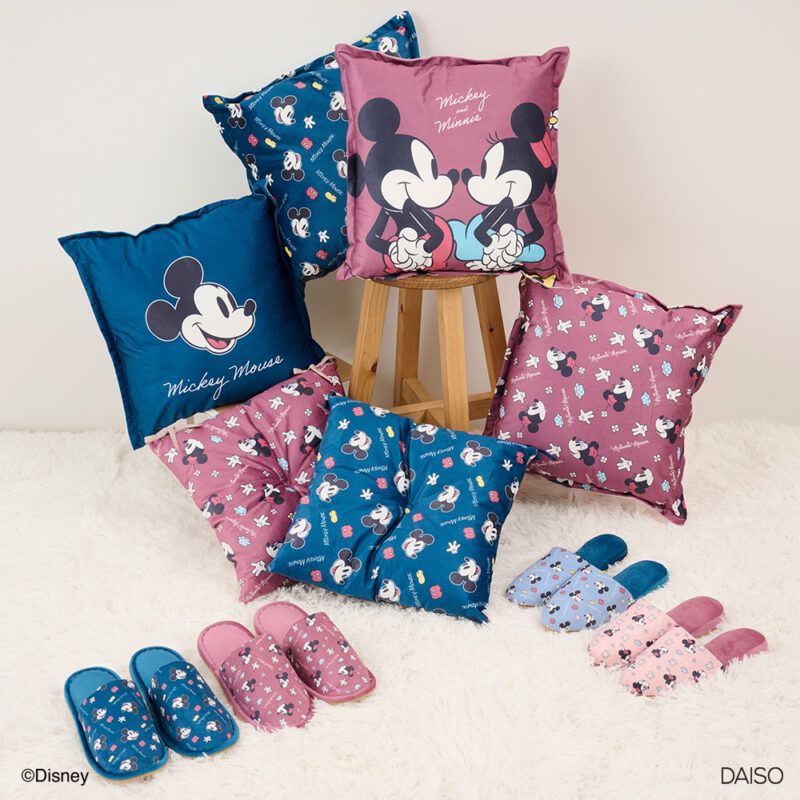 100均ダイソーで人気の『ディズニー』コラボグッズ!秋冬リビングで『クッション、スリッパ』などの冬アイテムが販売しています!