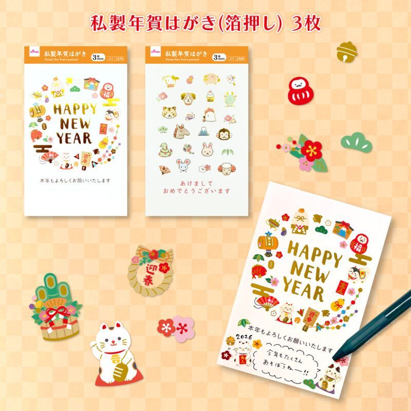 シールを貼ったりメッセージを書いて自分だけの年賀状にアレンジ!