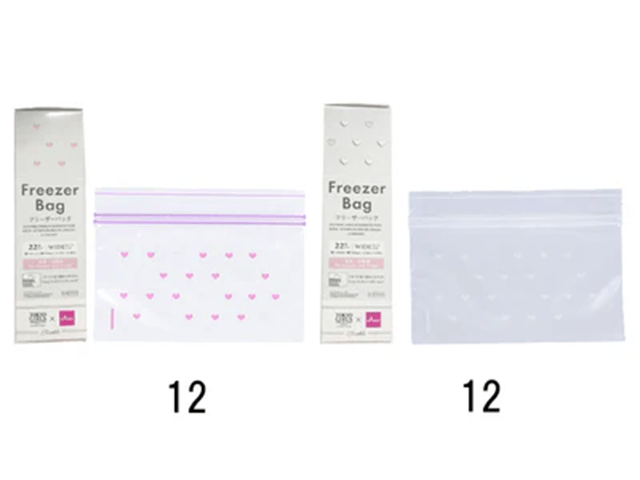 ダブルジップフリーザーバッグ(ハートポケット柄、15枚) 100円(税込110円)