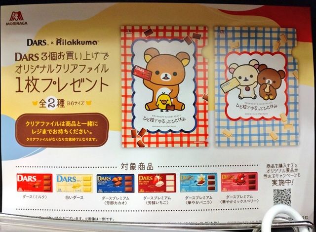 ダースとリラックマのキャンペーンで、クリアファイルもらってきました🙌