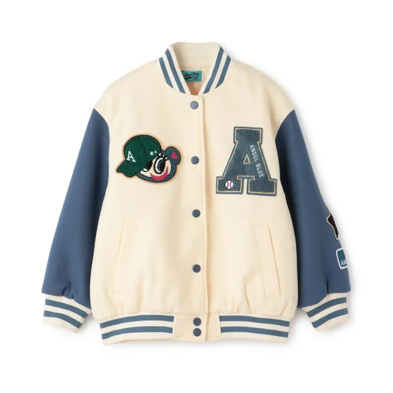 存在感バツグン! 立体感のあるナカムラくんのサガラ刺しゅうワッペンが目を引くインパクトたっぷりのスタジャンです。