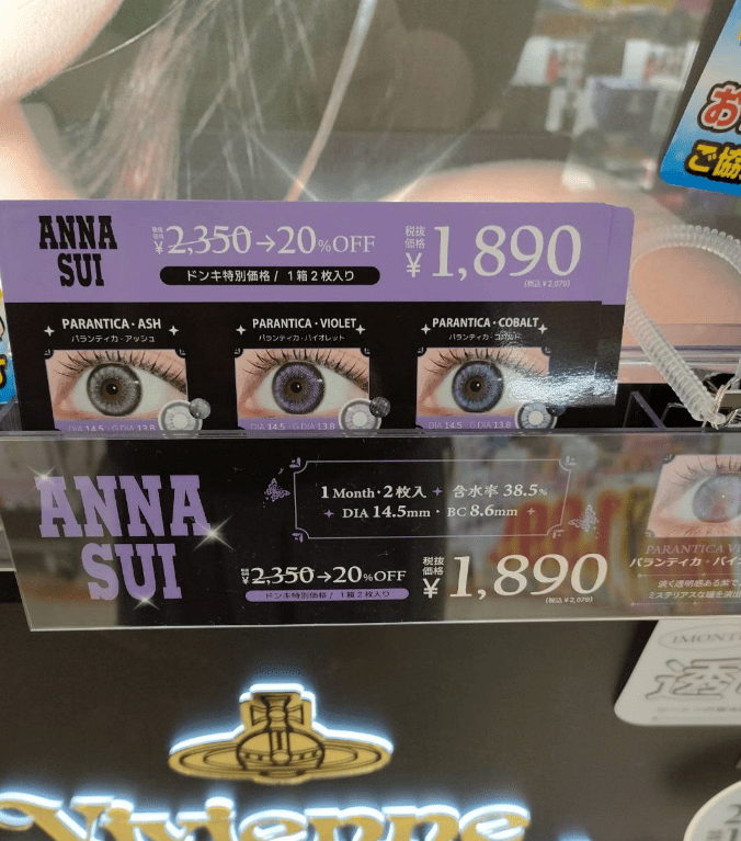 ドン・キホーテでは、『ANNA SUI(アナスイ)』ブランドのカラコンを販売しています。ドンキの一部店舗で取り扱いも実施して話題になっています!