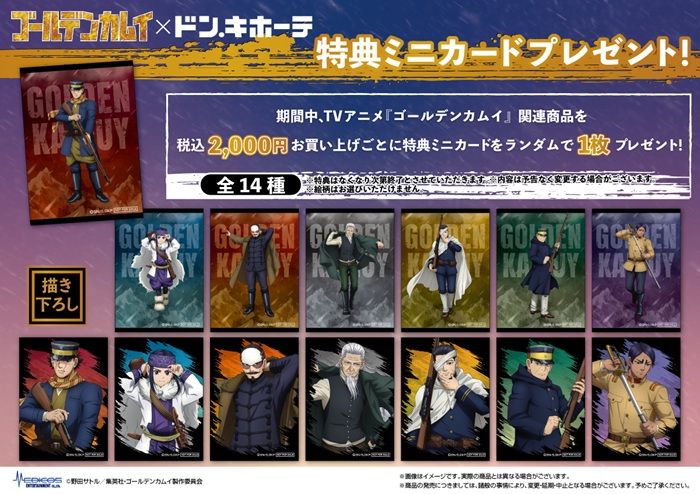 TVアニメ『ゴールデンカムイ』関連商品を2,000円(税込)お買い上げごとに特典ミニカード(全14種)をランダムで1枚プレゼント。