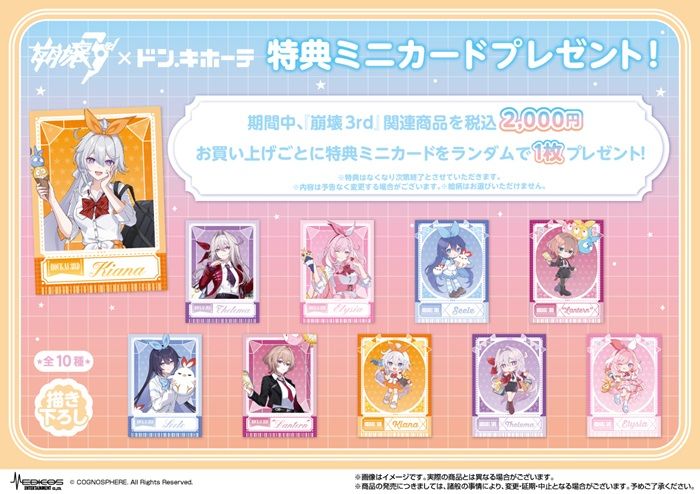 『崩壊3rd』関連商品を2,000円(税込)お買い上げごとに特典ミニカード(全10種)をランダムで1枚プレゼント。