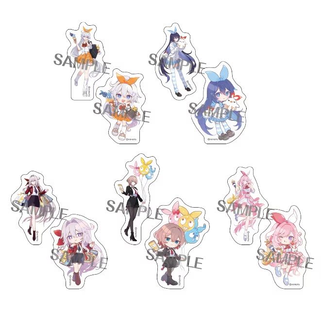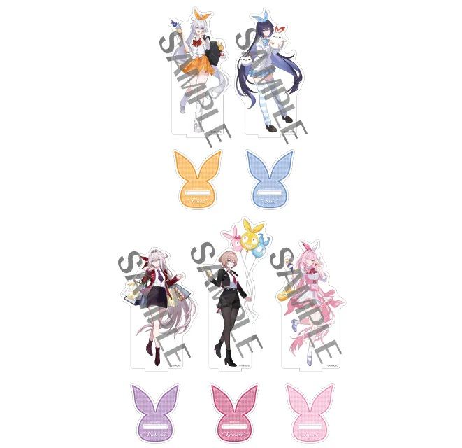 テーマパークを巡るキアナ、ゼーレ、セルマ、アカリ、エリシアの5人の可愛らしいイラストのアクスタ、タペストリー、キーホルダー、ステッカー、缶バッジなどがラインナップ!