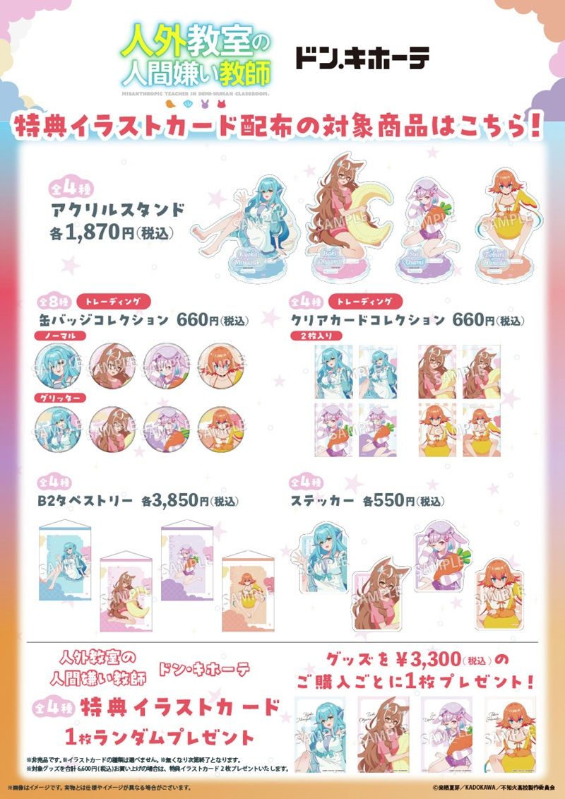 『人外教室の人間嫌い教師』×ドン・キホーテ のコラボグッズを3,300円(税込)お買い上げ毎にランダムで1枚プレゼント。